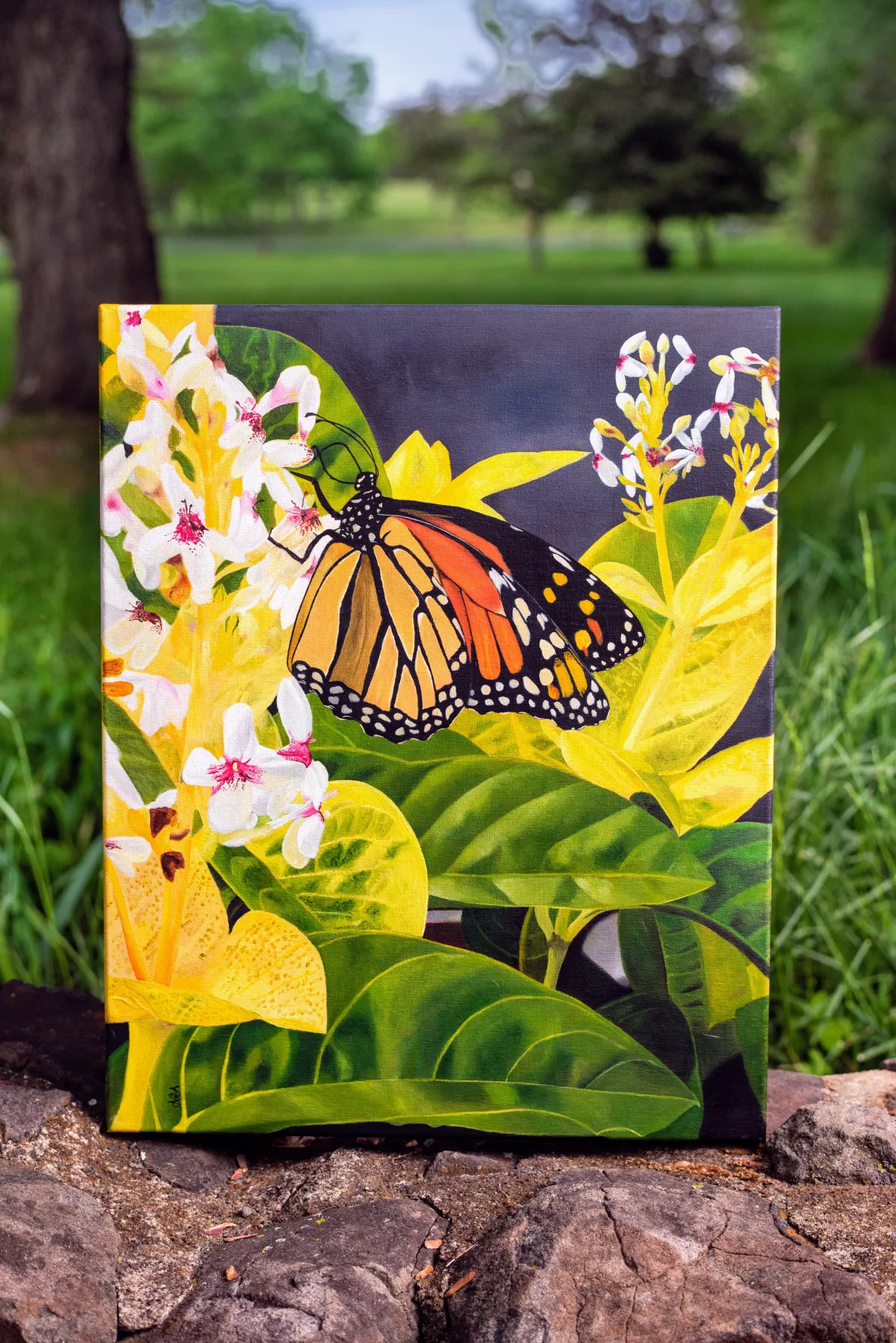 The painting of a monarch butterfly done by Anita now adorns the wall of my home. The colors are so vibrant and the work is so detailed that it looks like a photo from a distance. I placed it between two windows where it benefits from the light from each window. While I don’t now very much about art, I do know that this painting speaks to me of the beauty of nature and the miraculous transformation of this part of God’s handiwork. Anita expertly captured the peaceful moment where the transformation was fully accomplished. Up close the brush strokes can be seen and your eyes are drawn into the painting to absorb the beautiful scene. This is a painting that I wii cherish and it will always occupy a prominent place of honor in my home.