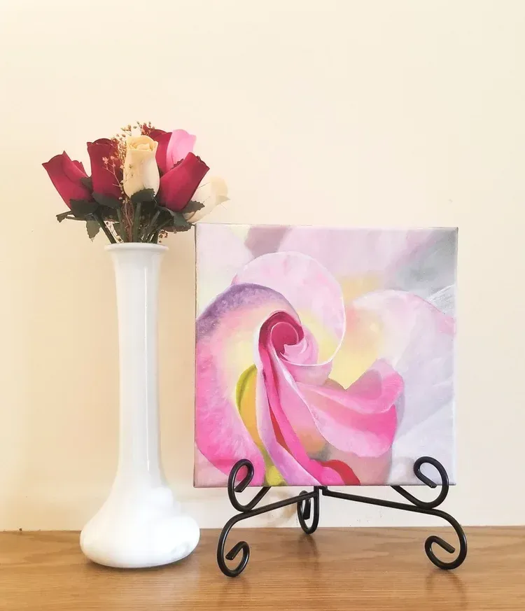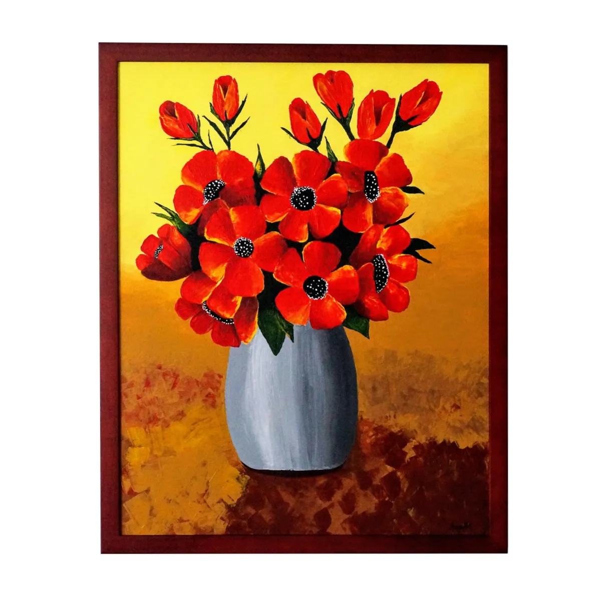 'The Scarlet Bouquet’ filled my study with color! The bright and bold pigmented colors and textures of this acrylic painting has an innate energy and beauty of its own.